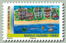 L’artiste a tenu à réunir les grandes images qui font la spécificité de cette île, comme le centre culturel Tjibaou, le pin colonnaire, ou le serpent tricot rayé. Dʹaprès Phil@Poste