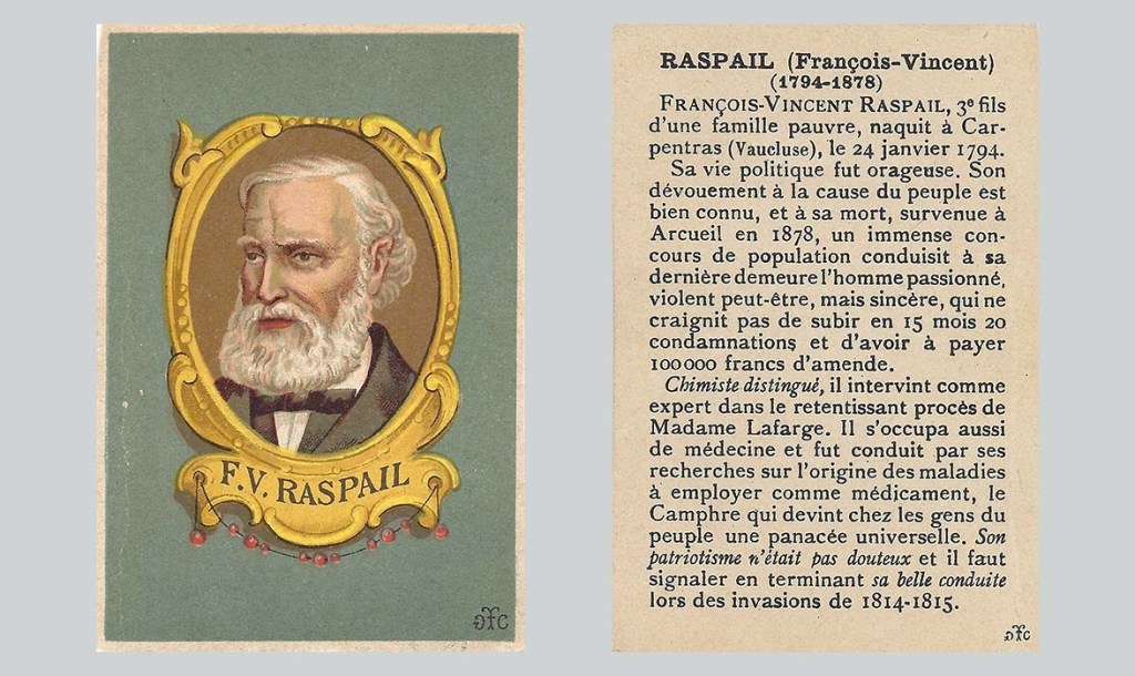 Sur mon blog François-Vincent Raspail (1794-1878) chimiste botaniste et homme politique – 24 janvier 1794 ou 29 janvier 1794 (plus d’infos) – 7 janvier 1878 – image et texte source