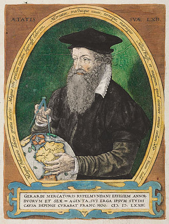 Mercator, de son vrai nom Gerhard Kremer, est à l’origine de la première projection du globe pour les navigateurs qui révolutionna la cartographie. Mathématicien et géographe, Mercator commence ses études à l’Université de Louvain en 1530 sous la direction de l’astronome Frisius qui l’initie à la construction et représentation du globe. En 1538, il fait paraître sa première carte du monde après celle de la Terre Sainte, sortie l’année précédente. À partir de 1552, il travaille à l’élaboration d’une projection de la Terre qui le conduit à publier, en 1569, les 18 feuilles de « La projection de Mercator » qui fournit enfin aux navigateurs une réelle description des contours des terres. L’originalité de Mercator repose sur la projection de la surface terrestre sur un cylindre tangent à l’équateur ce qui présente l’avantage de ne pas déformer les angles. On parle aussi de représentation cylindrique tangente, où les méridiens sont espacés régulièrement tandis que la distance entre les parallèles augmente avec la latitude. Ce qui exagère beaucoup les surfaces au fur et à mesure qu’on s’éloigne de l’équateur. À la fin du XVIe siècle, la géographie du monde est enfin exprimée dans sa forme et ses proportions véritables. Avec l’imprimerie, l’Europe devient un centre d’information et de diffusion de cartes géographiques fiables, utilisant des critères rationnels.source ►LBIS