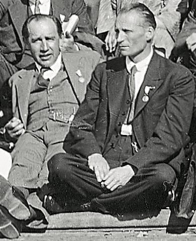 Harald Bohr (à gauche) et L. E. J. Brouwer (à droite) au congrès international des mathématiciens de 1932 à Zurich.