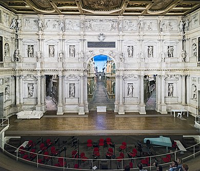 3 mars 1585 Théâtre indoor – ‘Oedipe-Roi‘ de Sophocle est la première pièce jouée dans un théâtre couvert. Il s’agit du Theatro Olimpica de Vicence en Italie construit par l’architecte Andréa Palladio. Edifié sur le modèle de ceux de la Rome antique, il se singularise par l’adjonction d’un plafond plat. Détail amusant, il fait peindre un ciel sur ce plafond, comme un remords de dernière minute. l’événement 3 mars 1585 Inauguration du Teatro Olimpico avec la représentation d’Œdipe roi de Sophocle et les chœurs d’Andrea Gabrieli (spectacle repris en 1997 par l’académie olympique, mise en scène de Gianfranco De Bosio). wikipédia