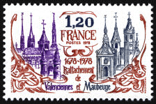Le timbre représente les églises de Valenciennes et Maubeuge