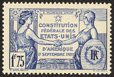 17 septembre 1787 La convention réunie à Philadelphie accepte la constitution des États-Unis d’Amérique – La constitution des États-Unis est, selon ses propres termes, la « loi suprême du pays ». Acceptée le 17 septembre 1787 par une convention réunie à Philadelphie, elle s’applique depuis le 4 mars 1789. Modifiée par vingt-sept amendements, elle est une des plus anciennes constitutions écrites encore appliquées. Elle est fondée sur une séparation stricte des pouvoirs, établissant ainsi un régime présidentiel. Le pouvoir exécutif est du ressort d’un président des États-Unis, à la fois chef de l’État et chef du gouvernement. Le pouvoir législatif est bicaméral. Il s’agit du Congrès, composé de deux chambres : d’une part la Chambre des représentants (chambre basse), qui représente les citoyens, et d’autre part le Sénat (chambre haute), qui représente les États fédérés. Seules ces chambres possèdent l’initiative parlementaire et votent les lois, ainsi que le budget fédéral. Enfin, le pouvoir judiciaire présente à son sommet la Cour suprême, qui veille au respect de la Constitution par les lois, les États fédérés et les organes de l’État fédéral. La Constitution prévoit ainsi par ce système l’équilibre des pouvoirs ainsi que leur collaboration (en anglais « checks and balances »). Ratifiée à l’origine par treize États fédérés, aujourd’hui au nombre de cinquante, elle crée un État fédéral. Bien que la Constitution et les lois des États-Unis s’imposent aux divers États fédérés, de très larges prérogatives leur sont réservées. Le gouvernement est, dès l’origine, de type républicain et fondé sur la souveraineté du peuple. Son caractère démocratique au sens actuel du terme, avec le suffrage universel, apparaît plus progressivement, parfois au travers d’amendements, plus souvent par le changement des lois ou des revirements de jurisprudence. D’après Wikipédia source timbres phil-ouest