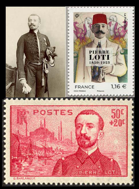 Reçu à l’École navale, Pierre Loti devient officier de Marine, fonction qu’il exerce pendant quarante ans et qui l’amène à parcourir le monde. De Tahiti à l’Extrême-Orient, en passant par l’Afrique du Nord et la Turquie – sa patrie d’élection, les pays traversés servent de cadres à ses intrigues romanesques. Loti s’affirme comme « le plus grand écrivain exotique », soufflant un siège à l’Académie française au nez de Zola en 1891. Caractérisées par un lexique pauvre et par la présence de personnages aussi frustes que passionnés, ses œuvres ont été comparées aux toiles des Impressionnistes, restituant par petites touches le langage des éléments. Cité en 1918 pour son action militaire, Loti a toujours veillé à observer d’un œil critique le paysage politique international, prenant publiquement position, notamment en faveur de la cause turque. Des funérailles nationales ont été organisées afin de célébrer sa mémoire. Figaroscope