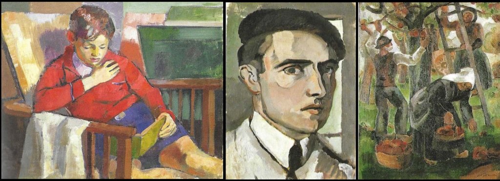 Jeune homme lisant – autoportrait au béret – la cueillette des pommes vers 1930 – source –