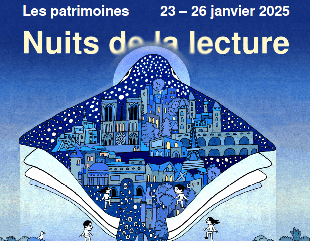 Organisées pour la quatrième année consécutive par le Centre national du livre sur proposition du ministère de la Culture pour célébrer le plaisir de lire, les Nuits de la lecture reviennent du 23 au 26 janvier 2025, sur le thème « les patrimoines« . lien et lien nuits de la lecture où vous pourrez trouver une bibliographie et un choix de texte sur le sujet