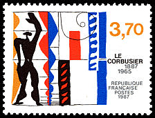 Le Corbusier construit et représente sa grille sur la silhouette d’un homme debout, levant un bras. En bâtissant l’échelle humaine, le Corbusier rejoint notamment les architectes de la Grèce antique. Comme ceux ci il aménage l’espace architectural pour que le corps s’y reconnaisse. Sa réflexion sur le comportement de l’homme, sur l’équilibre des volumes, de leurs dimensions et proportions l’amène à établir une grille de mesures s’appuyant sur le « Nombre d’Or ». Il construit sa grille par rapport aux différentes parties du corps humain et l’appelle « le Modulor ». D’après Le Nombre d’Or (site disparu) Le nombre d’or est symbolisé par la lettre grecque ? (phi), comme philosophie ou … philatélie, c’est justement cette lettre que Phil@poste a retenue depuis 2010 sur les timbres qu’elle suggère de réserver à la philatélie. La Cité radieuse de Le Corbusier à Marseille est inaugurée le 14 octobre 1962, au début les marseillais la surnommèrent la maison du fada, ce n’est plus le cas maintenant, elle fait partie des circuits culturels de Marseille. source timbres phil-ouest