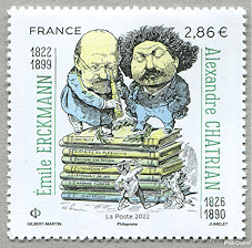 18 décembre 1826 Naissance de Alexandre Chatrian (1826-1890). Erckmann-Chatrian ont également écrit sous leurs patronymes respectifs. Nés tous deux en Meurthe et amis, ils ont écrit un grand nombre de romans nationalistes d’inspiration régionale exaltant le sentiment patriotique. Dans leur œuvre, le réalisme rustique, influencé par les conteurs de la Forêt-Noire, se transfigure en une sorte d’épopée populaire. Le musée historique et Erckmann-Chatrian de Phalsbourg leur est en partie consacré. D’après Wikipédia – source timbres phil-ouest