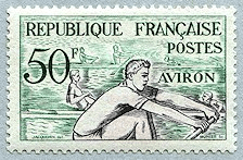 Timbre émis en l’honneur de Raymond Salles (18 juillet 1920 – 15 juin 1996) et Gaston Mercier (5 juin 1932 – 4 juillet 1974), barrés par Bernard Malivoire (20 avril 1938 – 18 décembre 1982), médaillés d’or aviron deux avec barreur