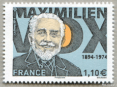 Maximilien Vox, né Samuel William Théodore Monod le 16 décembre 1894 à Condé-Sur-Noireau, est le fils du pasteur Wilfred Monod et le frère du naturaliste et grand humaniste Théodore Monod. C’est un artiste-né, il étudiera le dessin jusque dans la typographie et publie en 1926 ses «Divertissements typographiques». Il remporte à l’époque un vif succès dans le monde des graphistes. Il se passionne pour les couvertures de livres afin qu’elles soient un lien direct entre le texte et le lecteur. Il est le créateur du célèbre logo de la collection de romans policiers «Le Masque » associant un masque noir et une plume, logo qui figure toujours sur chaque roman. La publicité fait également appel à son talent. En 1938 il réalise un logo pour la SNCF qui marquera le siècle. En 1946, il devient administrateur des Éditions Denoël. Passionnément attaché à la typographie, il fonde en 1951 la revue «Caractère», qui paraîtra jusqu’en 1964.En 1952, il crée, notamment avec Jean Giono, Les Rencontres internationales de Lure, où se réunissent en congrès tous les ans, les spécialistes du monde entier de la lettre, de l’imprimerie et du livre. Maximilien Vox demeure vivant et connu dans le monde de la typographie pour la création en 1954 d’un code de classification typographique qui est à ce jour le seul reconnu par l’Association typographique internationale. Les caractères sont regroupés en différentes familles en fonction de leurs origines historiques : Humanes, Garaldes, Réales,Didones, Mecanes, Lineales, Incises, Scriptes et Manuaires. Il décède le 18 décembre 1974. source timbres phil-ouest