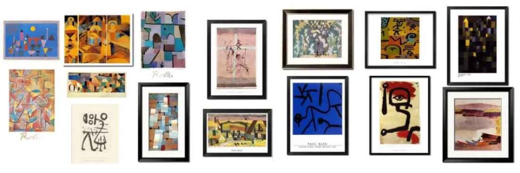 Issu d’une famille de musiciens, Paul Klee épouse lui-même une pianiste, Lily Stumpf. C’est toutefois vers la peinture qu’il se tourne, autour du groupe d’artistes Der blaue Reiter (Le Cavalier bleu), composé notamment de Macke et de Kandinsky. Professeur au Bauhaus, école d’art fondée à Weimar, il est très impressionné par l’École de Paris et participe en 1925 à la première exposition surréaliste. Ses œuvres oscillent entre l’abstraction géométrique et l’onirisme. Il part enseigner à l’académie de Düsseldorf, mais il est bientôt révoqué et expulsé d’Allemagne par les nazis, qui qualifient son art de ‘dégénéré’, puis il retourne à Berne où Picasso et Braque, solidaires, viennent lui rendre visite. Il meurt le 29 juin 1940 d’une paralysie du muscle cardiaque, avant que la guerre ne soit achevée. Il a laissé de nombreux écrits théoriques, fondateurs de l’art moderne. (lien biographie lettre de l’événement) d’où j’extrais des éléments